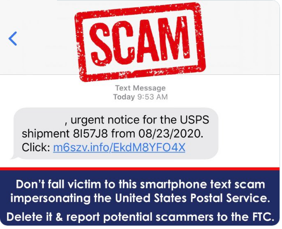 US Postal Service Text Message Scam – the text message you receive will state something to the fact of “your package arrived at our distribution warehouse